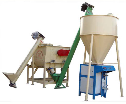 主要配置:大傾角螺旋上料機(分地上式和地下式,定購時請說明),平臺支架,無重力混合機(配飛刀),成品螺旋提升機,儲料倉,全自動計量包裝,除塵器(選配),電器控制柜等組成。